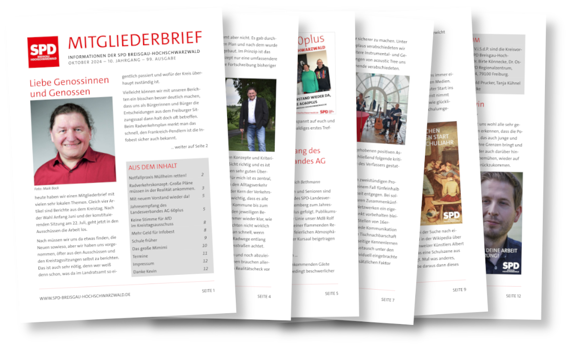 Dieses Mal haben wir ein Ausgabe, die viel Lokales im Gepäck hat. Im Guten, wie im Bösen, wenn man so möchte. Denn es geht unter anderem sowohl um das doch eher positive neue Radverkehrskonzept, das der Kreistag bald beschließen wird und dann aber auch um die angekündigte Schließung der Notfallpraxis in Müllheim. Innerparteilich freuen wir uns über den Neustart der AG 60plus.