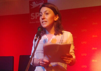 Zu Julien Bender sagte sie: "Wir haben mit ihm einen jungen und intelligenten Kandidaten, der sich - nicht nur seit heute - mutig in politische Diskurse einbringt, Ideen hat und auch Verantwortung übernimmt" und mit Blick auf das Kanzleramt stellte sie fest "Meine Generation braucht endlich einen Bundeskanzler der die Dinge anpackt und das ist Martin Schulz."